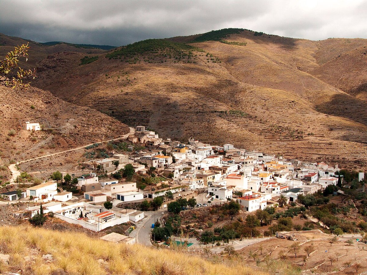 From Almería airport the road climbs for fifty kilometres but feels like a hundred. The ALP-716 switchbacks past abandoned cortijos and almond terraces until even the goats look bored. Then the village appears: a slab of slate-roof cubes threaded by passages barely two metres wide, the church bell tower poking above the roofs like a after-thought. Park on the upper edge—there are no metres—and the whole basin opens westwards, ridge after ridge folding into hazy violet. At dusk the only sound is the hum of Calar Alto observatory’s radar dome, blinking red on the opposite peak.