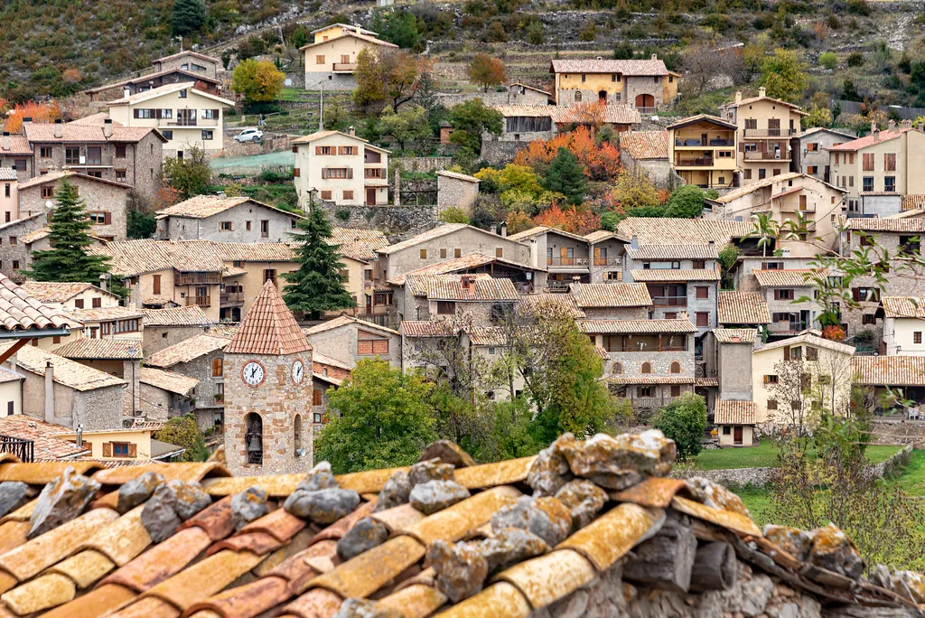 Accommodation ranges from the 18-room Hotel Cal Candi (stone walls, no lift, Wi-Fi that copes with email but buckles under Netflix) to stone cottages rented by the night. Expect ceiling beams dark with four centuries of smoke, wood-burning stoves and shutters that actually shut. South-facing rooms can hit 28 °C in July even though nights drop to 15 °C; check whether your rental has a fan before you commit. Weekend rates jump 30 %, but mid-week in March you might have the entire upper village to yourself. One caveat: church bells toll the hour until 23:00 and resume at 7:00 – ear-plugs recommended for light sleepers.