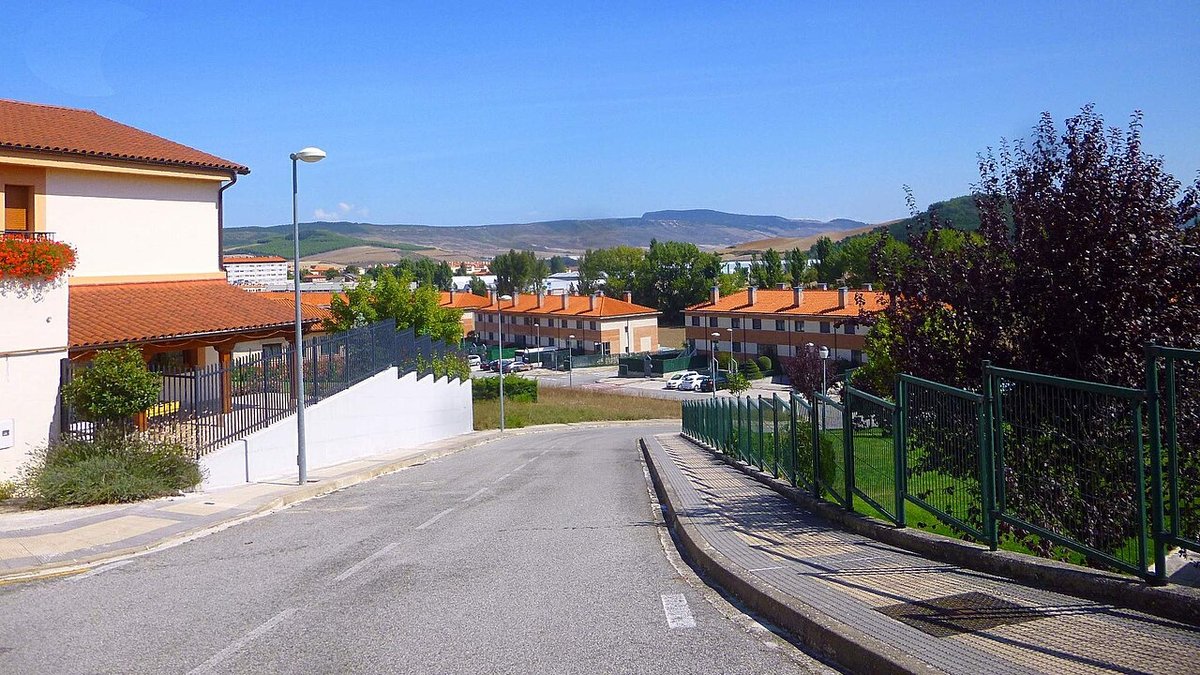 At 493 m above sea level the air is fractionally cooler than in the capital, enough to notice if you’ve spent the afternoon wandering Pamplona’s baked streets. The village spreads along a saddle of land where grain fields meet the suburban frontier. One side looks towards the yellow sodium glow of the city; the other dissolves into a patchwork of wheat, barley and fallow plots that runs all the way to the horizon. No mountains, no gorges, no Instagram backdrop—just open sky and the rhythmic creak of irrigation pivots.